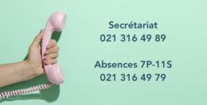 Les personnes responsables appellent la ligne des absences au 021 316 49 79 entre 8h00 et 9h00 et 13h30 et 14h00.
